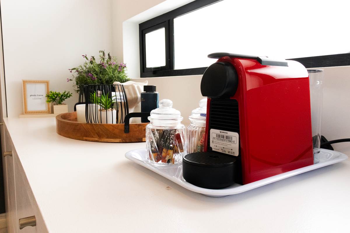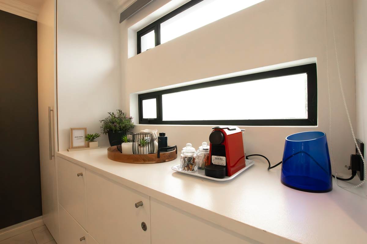 Step into a space designed with the perfect balance of modern luxury and minimalist charm. Featuring a refined white and dark grey color scheme, this room offers a serene atmosphere where every detail has been thoughtfully curated for your comfort. The sleek design, paired with carefully selected furnishings, creates a peaceful retreat that’s perfect for unwinding after a day of exploring or working. Enjoy the simplicity of elegance in this beautifully styled room.